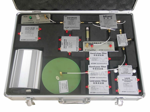 AT2000 RF射頻實驗訓(xùn)練模塊,是由平面螺旋天線、寬帶射頻放大器、混頻器、中頻放大器、射頻調(diào)制器、VCO壓控振蕩器、功率分配器、濾波器(包括高通、低通、帶通、帶阻)。固定衰減器、定向耦合器、函數(shù)發(fā)生器、開槽傳輸線、反射電橋、終端負(fù)載、短路器、電源等21個單元模塊組成,可方便地組合成射頻發(fā)射系統(tǒng)和射頻接收系統(tǒng),各單元模塊包含獨立的實驗電路,配合射頻實驗指導(dǎo)書,支持實驗?zāi)K構(gòu)成多種射頻實驗,使用戶更方便,更直觀獲取射頻系統(tǒng)的基本原理,工作方式和基本結(jié)構(gòu),適用于高等院校、科研單位的通信、雷達、導(dǎo)航、測控等專業(yè)實驗室使用。