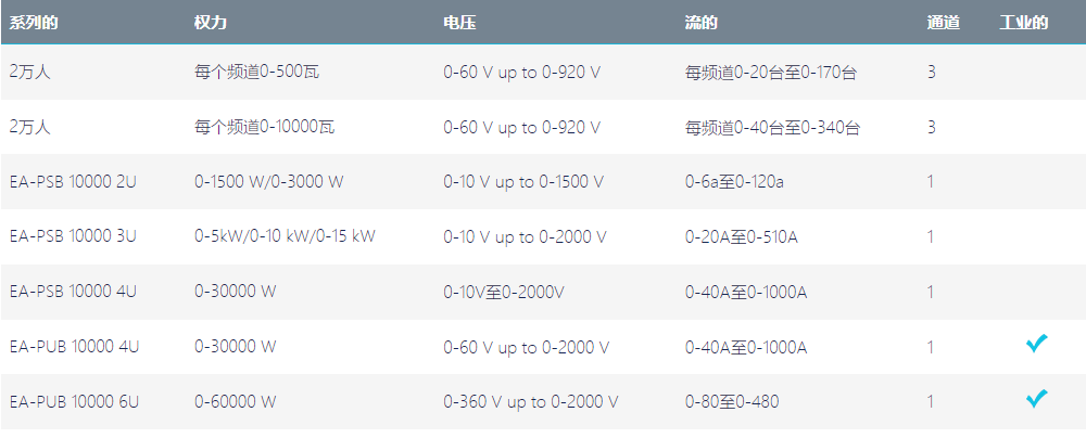對(duì)于最高的能源密度需求和面向未來的應(yīng)用,提供了EA-10000產(chǎn)業(yè)系列。6U形式因素提供高達(dá)60千瓦的功率,19"機(jī)架解決方案意味著,你可以提供300千瓦的電力,從只有0.6%平方米的面積。將多達(dá)13架雙向電源輸送和回收設(shè)備組合在一起。工業(yè)系列產(chǎn)品有單向電源、雙向電源和可再生電子負(fù)載。