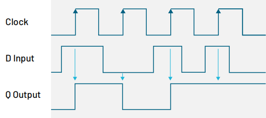 泰克TektronixMDO或MSO系列示波器最簡單的同步邏輯器件是觸發(fā)器。D輸入的邏輯狀態(tài)只有在時鐘上升沿之后(經(jīng)過D觸發(fā)器傳播延遲后)才會出現(xiàn)在Q輸出上。MSO是驗證觸發(fā)器工作狀態(tài)和調(diào)試數(shù)字電路的理想工具。
