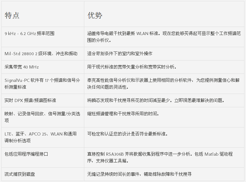 - 一款功能全面的頻譜分析儀,其價格不到傳統(tǒng)分析儀價格的一半。 它僅重 1.65 磅,占用很少桌面空間,方便拿在手中以及放在包、口袋或工具帶里。 ?9 kHz 到 6.2 GHz ?40 MHz 實(shí)時帶寬 ?包括免費(fèi)的 SignalVu 軟件,可進(jìn)行全面的頻譜分析,還包括用于常見應(yīng)用的選項(xiàng) ?美國制造 ?包括 3 年保修