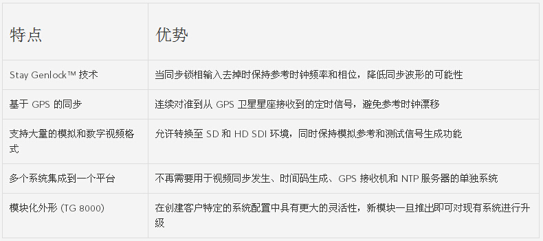 - 主控同步/主控時(shí)鐘參考發(fā)生器 泰克視頻同步發(fā)生器提供設(shè)施參考信號(hào),保證穩(wěn)定的設(shè)施定時(shí)源。泰克信號(hào)發(fā)生器提供設(shè)備驗(yàn)證和校準(zhǔn)應(yīng)用所需的測(cè)試信號(hào),支持眾多模擬和數(shù)字格式以方便您的技術(shù)轉(zhuǎn)換。 支持 3 Gb/s SDI 和雙鏈路 SDI 格式,幫助部署新興的視頻技術(shù)。Stay Genlock? 提供獨(dú)特而強(qiáng)健的同步鎖相模式,保證數(shù)字廣播設(shè)施的穩(wěn)定信號(hào)同步。GPS 同步和時(shí)間碼模塊帶有集成 GPS 接收器,提供長(zhǎng)期的參考時(shí)鐘穩(wěn)定性。同時(shí)還包含當(dāng)天時(shí)間和節(jié)目時(shí)間碼功能。泰克自動(dòng)切換設(shè)備在一個(gè)主和備份 SPG 系統(tǒng)內(nèi)提供設(shè)施參考信號(hào)冗余。