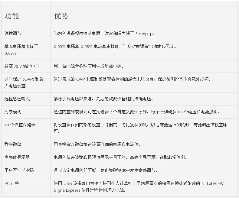- 快速準確選擇所需電壓和電流 PWS4000 可編程電源系列具有很大電壓和電流范圍,為您的測試臺增添更多功能;倦妷壕 0.03%,噪聲低于 5 mVp-p,讓您對直流電源的輸出值盡管放心。列表模式和用于遠程編程的 USB 端口,可加快復(fù)雜的測試開發(fā)。PWS4000 電源系列能夠快速準確地生成您所需要的電源。