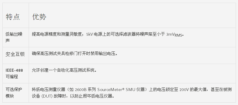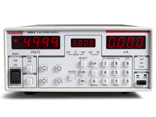 - 具有低輸出噪聲的高壓輸出 2290 系列高壓電源非常適合高壓設備和材料測試,以及高能物理試驗。為高達 5000V 的電壓輸出選擇 2290-5 型號電源,為高達 10,000V 的電壓輸出選擇 2290-10 型號電源。這些電源測量 1V 分辨率的輸出電壓和 1μA 分辨率的輸出電流。除了電壓和電流輸出顯示屏外,第三個顯示屏顯示以下四種設置之一:輸出電壓、電壓限值、電流限值或電流跳閘。