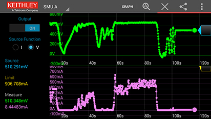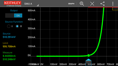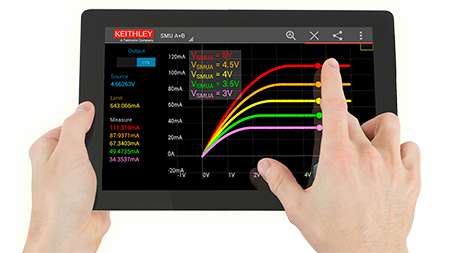 • 利用移動(dòng)設(shè)備執(zhí)行 I-V 檢定。無(wú)需編程即可深入分析設(shè)備! Keithley IVy 能夠最快速最簡(jiǎn)便地執(zhí)行電流-電壓 (I-V) 檢定、為被測(cè)器件 (DUT) 排障以及與他人共享測(cè)量結(jié)果。由此,您無(wú)需編程即可實(shí)現(xiàn)測(cè)量結(jié)果的可視化、交互和共享,同時(shí)深入了解 DUT! Keithley IVy 兼容于運(yùn)行固件版本 3.1.0 或更高版本的 Keithley 2600B 系列 SourceMeter? 源測(cè)量單元 (SMU) 儀器。