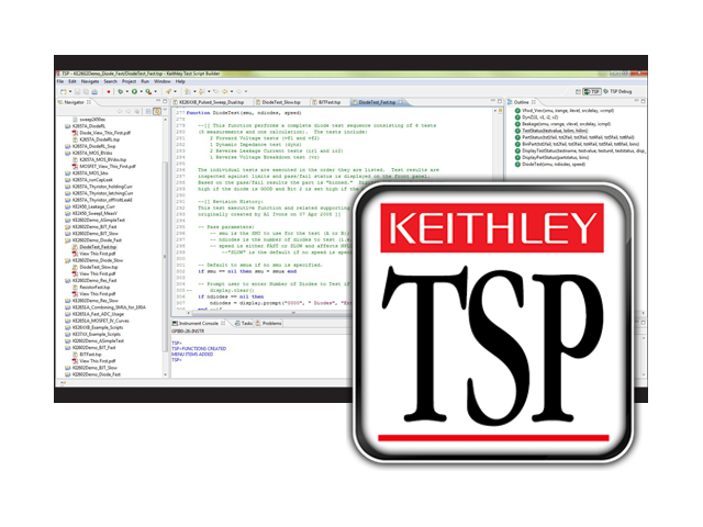 - 為兼容 TSP 的儀器創(chuàng)建、修改、調(diào)試和管理 TSP 測試腳本